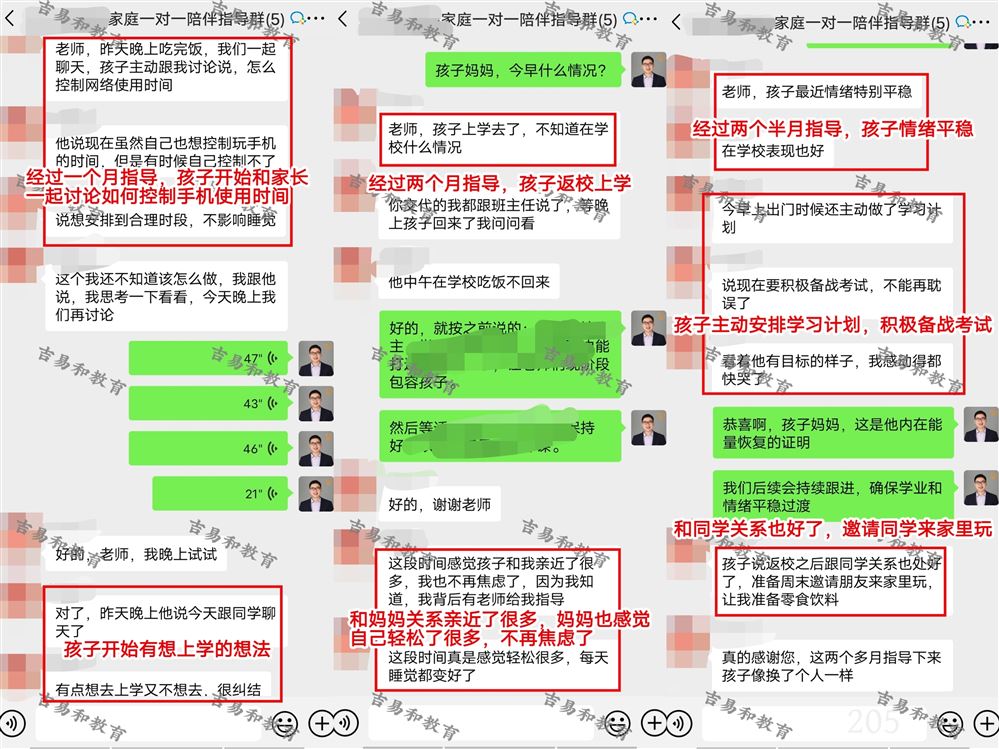 经过一个月指导,孩子主动减少了玩手机的时间,尝试调整黑白颠倒的作息,还愿意和家人讨论如何控制网络使用到合理时段。对学校和学习的抵触感减轻,开始有重返校园的意愿。