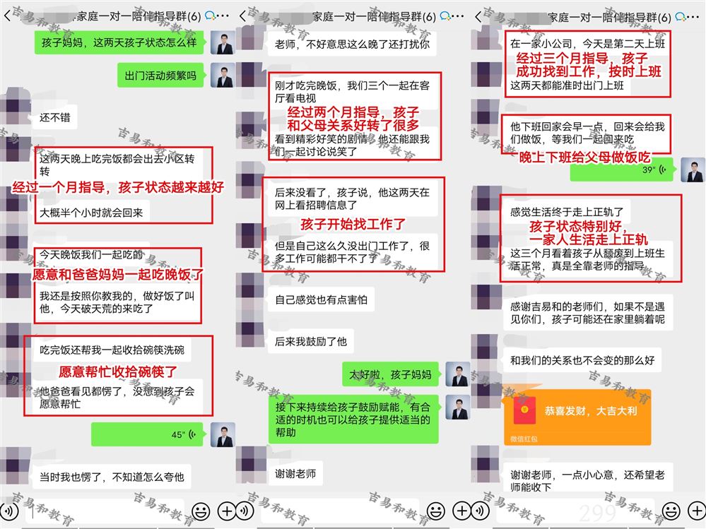 经过三个月指导,孩子成功找到了一份合适的工作,按时出门上班,回家后可以和父母一起吃饭聊天,下班回家还能给父母做饭吃。