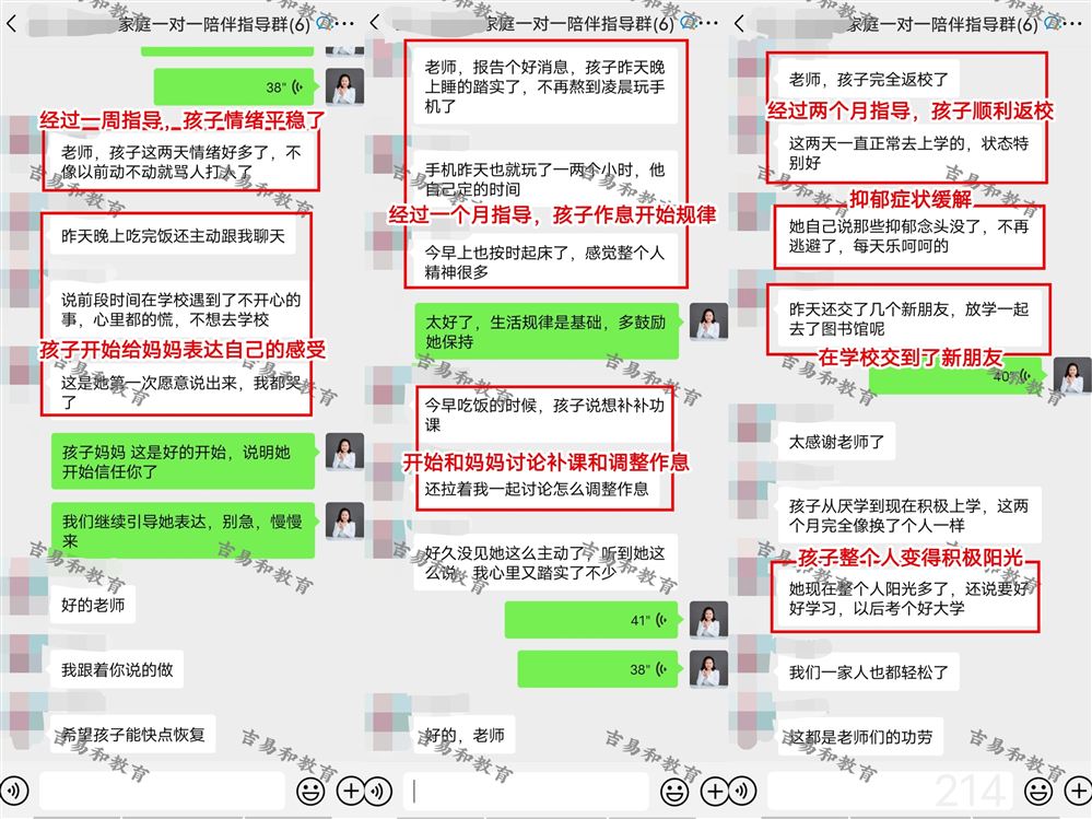 经过一个月指导,孩子主动调整了作息,把游戏时间控制到晚上11点前,并开始表达想复学的念头,骨折康复期间还自己找了些学习资料看看。