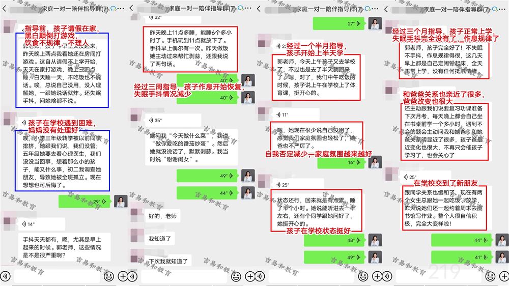 经过一个半月指导,孩子状态明显好转,自我否定的想法逐渐减少,开始尝试半天上学,家庭氛围也变得更加轻松愉快。